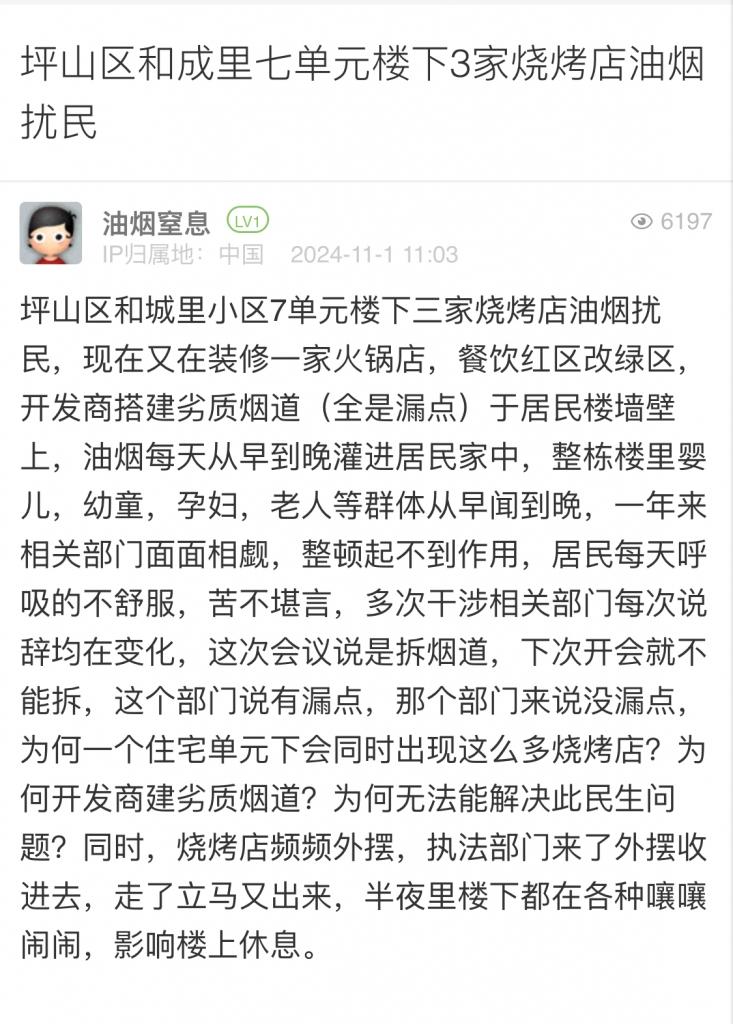 16. 帖文《坪山区和成里七单元楼下3家烧烤店油烟扰民》