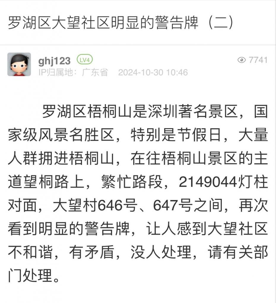 18. 帖文《罗湖区大望社区明显的警告牌(二)》