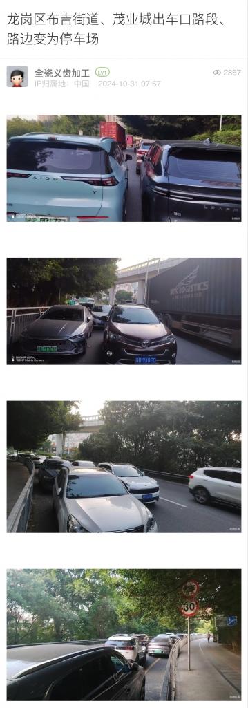 12. 帖文《龙岗区布吉街道、茂业城出车口路段、路边变为停车场》