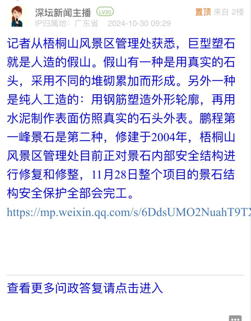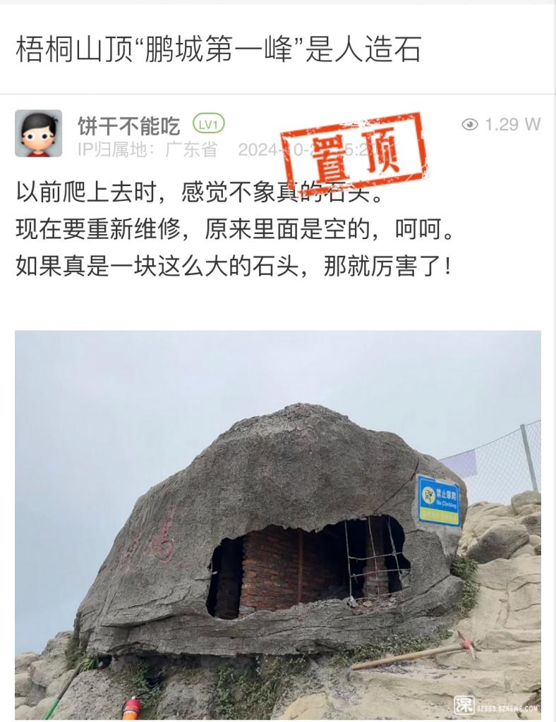 7. 帖文《梧桐山顶“鹏城第一峰”是人造石》