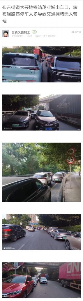 19. 帖文《布吉街道大芬地铁站茂业城出车口,转布澜路违停车太多导致交通拥堵无人管理》