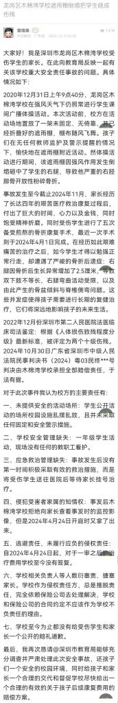 1. 帖文《龙岗区木棉湾学校遮雨棚倒塌把学生砸成伤残》