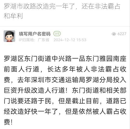 6. 帖文《罗湖市政路改造完一年了,还在非法霸占和牟利》