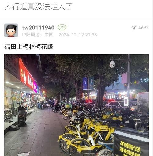 网友您好,感谢您对我们梅林街道工作的关注与建议,收到您反映的梅华路非机动车乱停放、堵塞人行道的问题后,街道高度重视,第一时间组织相关部门开展整治。一是约谈共享单车片区负责人,要求其加强车辆调度和维护,并在该区域减少投放,确保车辆分布合理,减少乱停放现象,并将同步对共享单车企业的服务质量进行监督和评估,对于未能履行管理责任的,将依法依规进行处理。二是街道执法队已联合社区、上梅股份公司对非机动车乱停放的问题开展专项行动,做到及时发现,及时整治。三是增设非机动车标识标牌,营造良好停车秩序引导居民做到有序停放车辆,提高居民文明停车意识。四是合理规划停车位,在不影响交通和行人通行的前提下,合理增设非机动车停车位。五是加强宣传引导,通过发放宣传资料、现场劝导等方式,向市民宣传非机动车规范停放的重要性,增强市民的文明意识和自觉意识。如您还有其他意见建议,也可直接电话联系梅林街道执法队(83318969)反映,工作人员将第一时间安排核实处置。