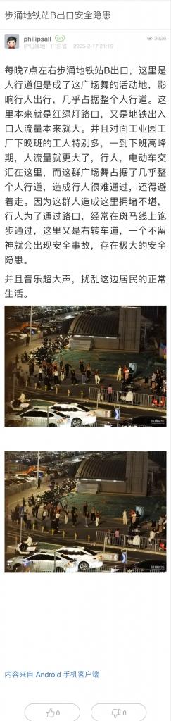 22. 帖文《步涌地铁站B出口广场舞》《步涌地铁站B出口安全隐患》