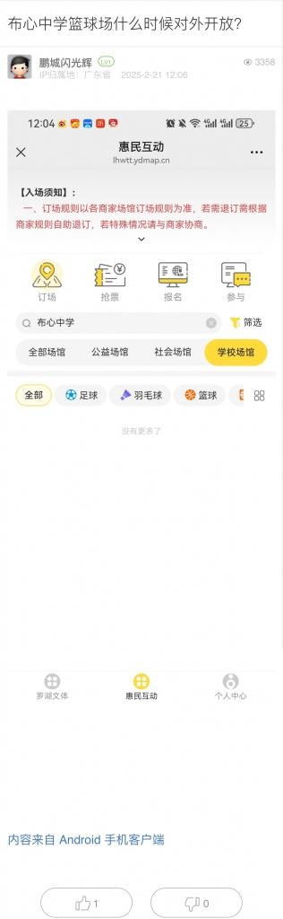 14. 帖文《布心中学篮球场什么时候对外开放?》