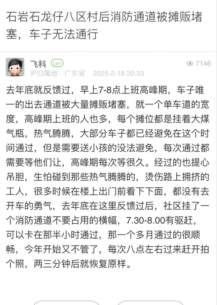 25. 帖文《石岩石龙仔八区村后消防通道被摊贩堵塞,车子无法通行》