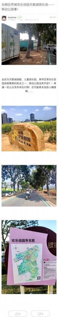 13. 帖文《光明区侨城欢乐田园天鹅湖游乐场——移动公厕事!》