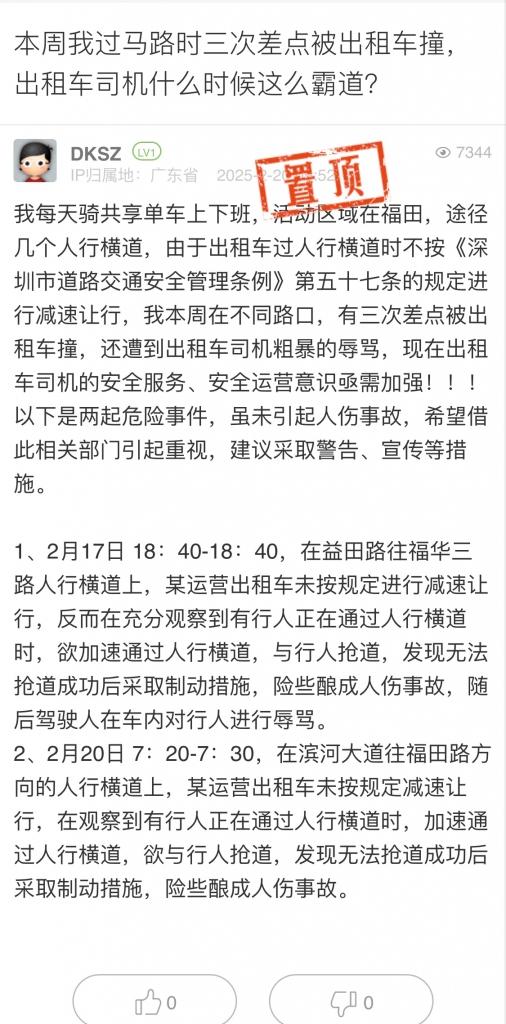 11. 帖文《本周我过马路时三次差点被出租车撞,出租车司机什么时候这么霸道?》