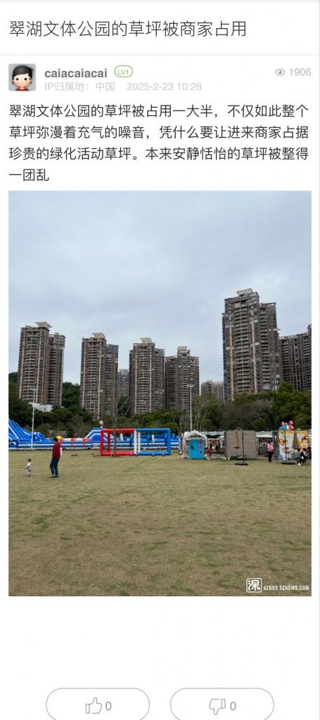 19. 帖文《翠湖文体公园的草坪被商家占用》