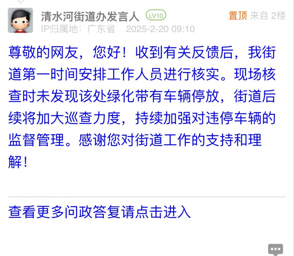 尊敬的网友,您好!收到有关反馈后,我街道第一时间安排工作人员进行核实。现场核查时未发现该处绿化带有车辆停放,街道后续将加大巡查力度,持续加强对违停车辆的监督管理。感谢您对街道工作的支持和理解!