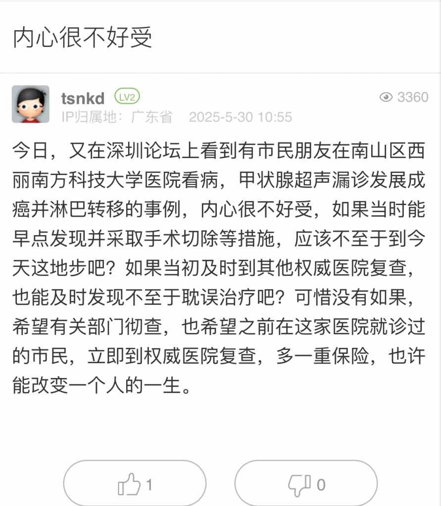 20. 帖文《南方科技大学医院甲状腺漏诊发展成癌且大面积转移淋巴》