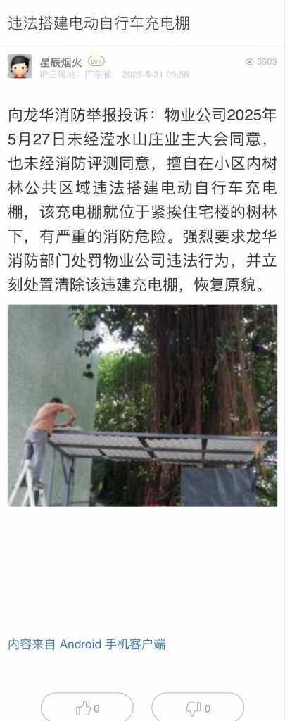 28. 帖文《松泉公寓15栋小区公共配电房系违建--请执法部门依法拆除》
