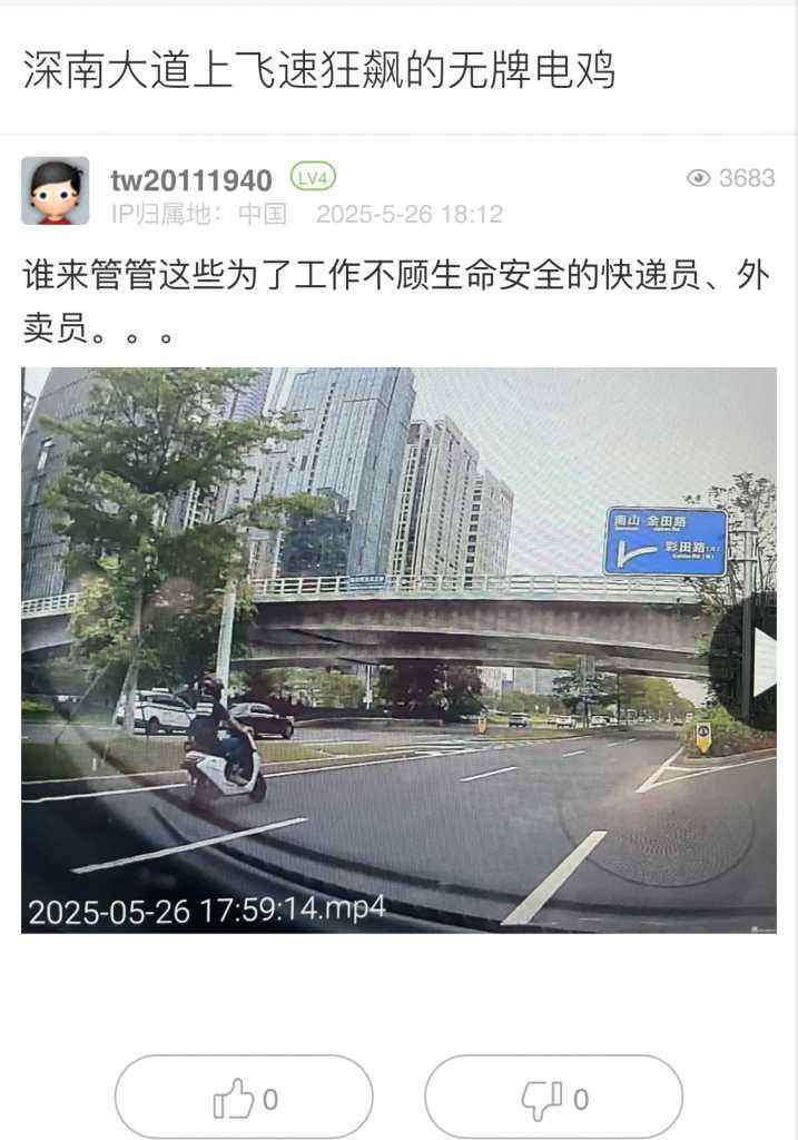 5. 帖文《深南大道上飞速狂飙的无牌电鸡》