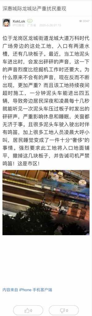 10. 帖文《深惠城际龙城站严重扰民重现》
