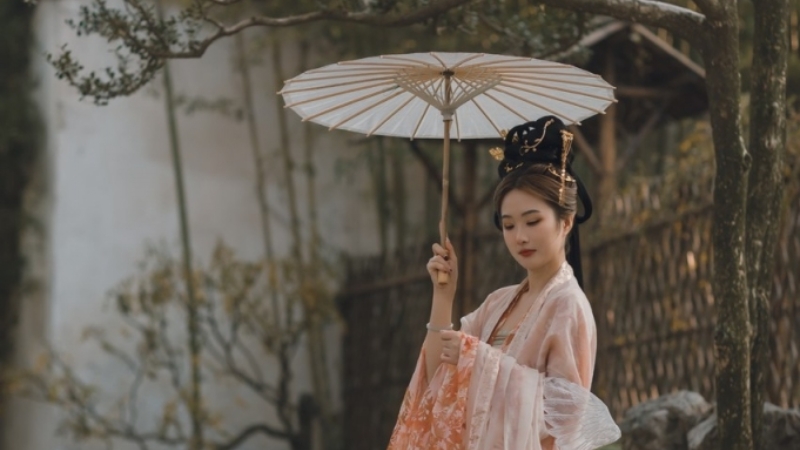 凤眼半弯藏琥珀,朱唇一颗点樱桃