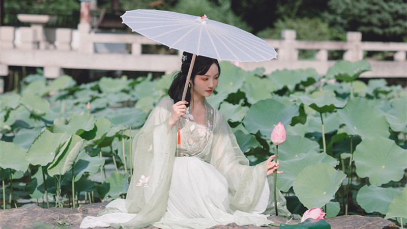 荷叶罗裙一色裁,芙蓉向脸两边开