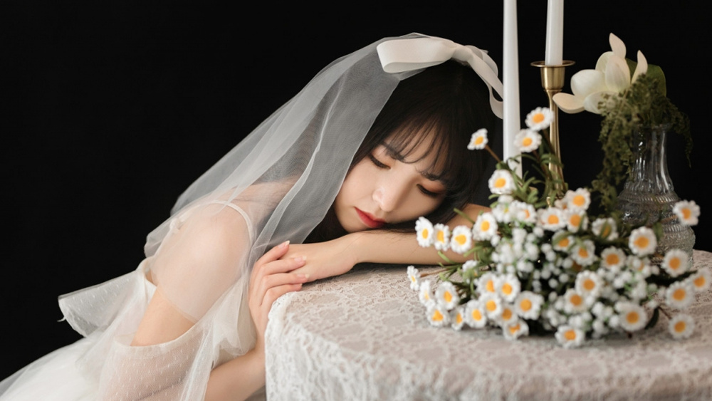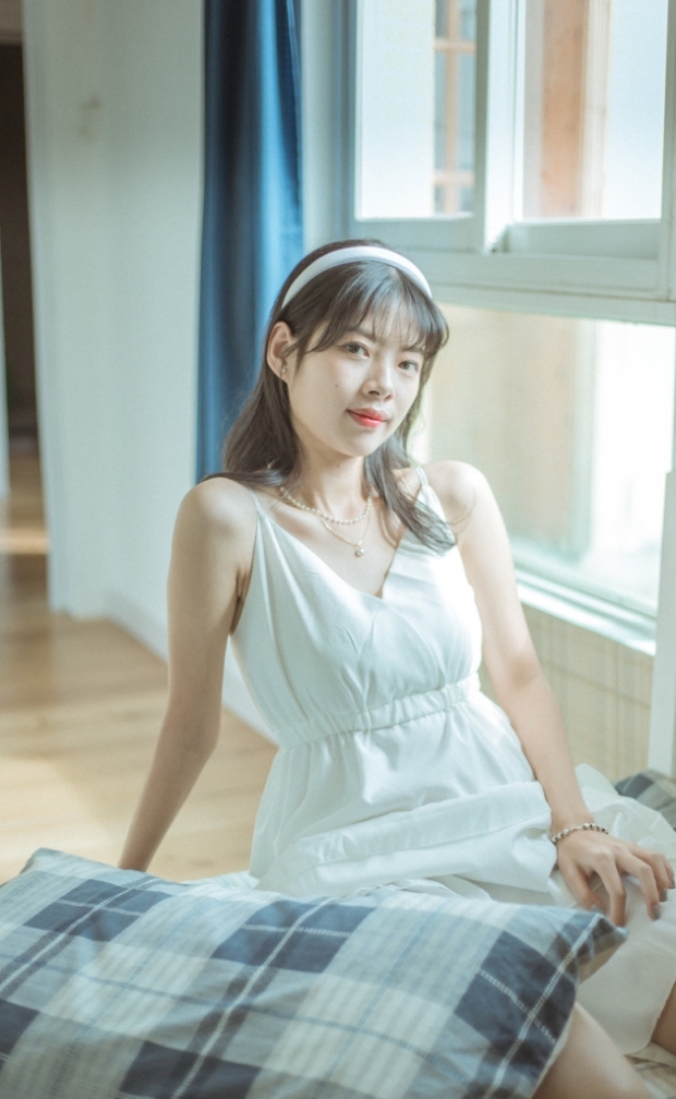 天使般柔软的白裙女孩