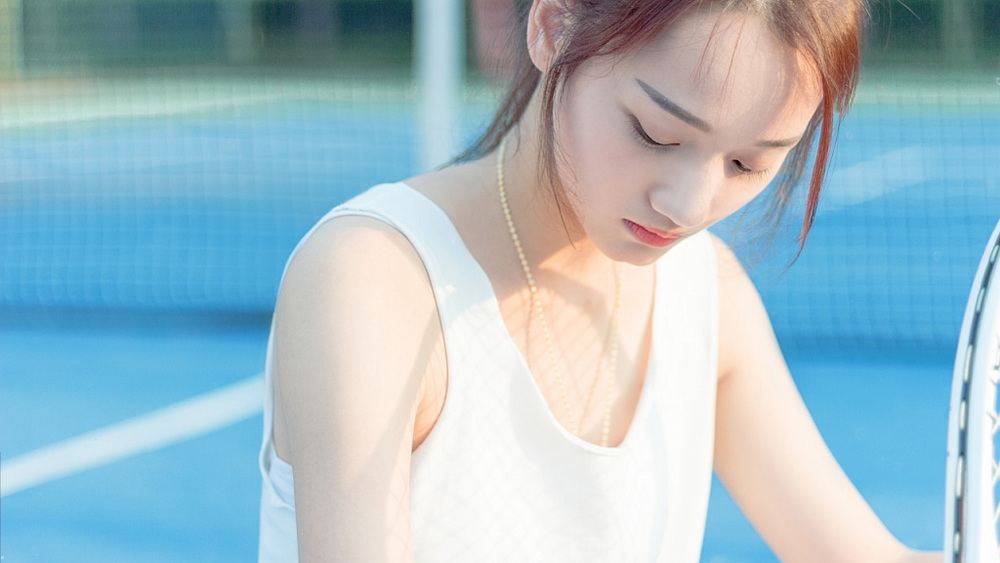 夏季操场上的网球少女
