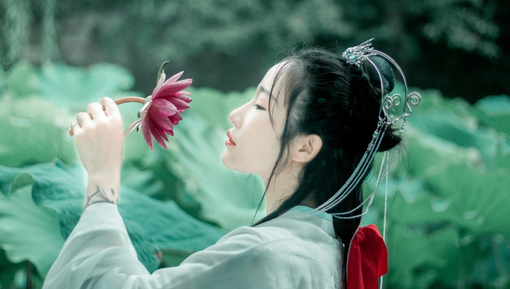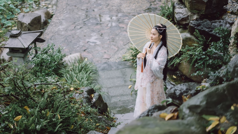 树影斑驳下的汉服美女