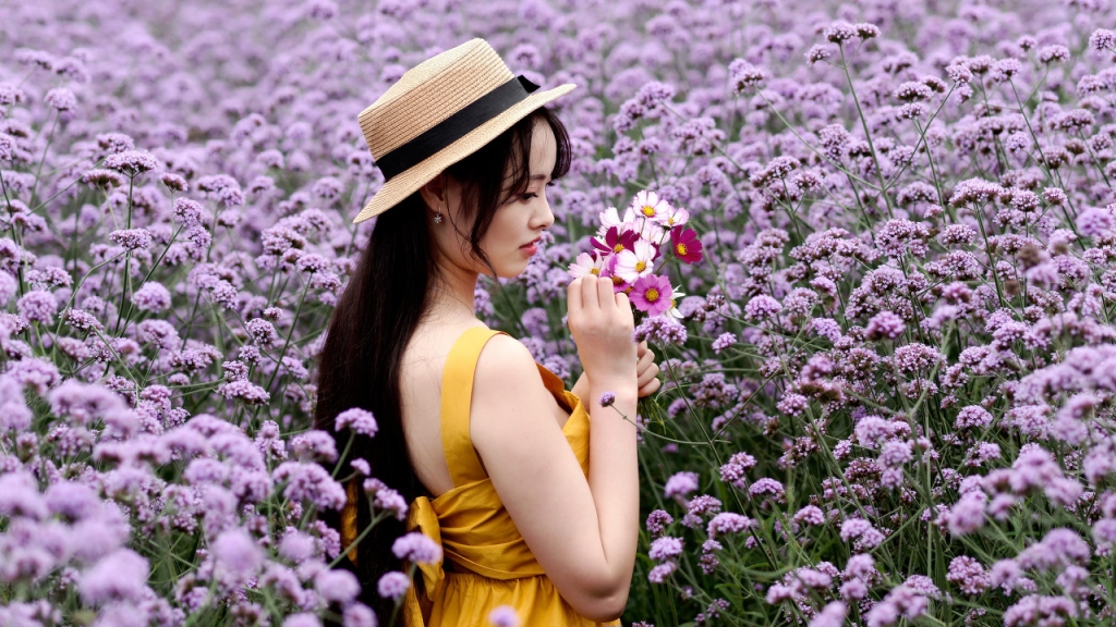 紫色花海中的美人儿