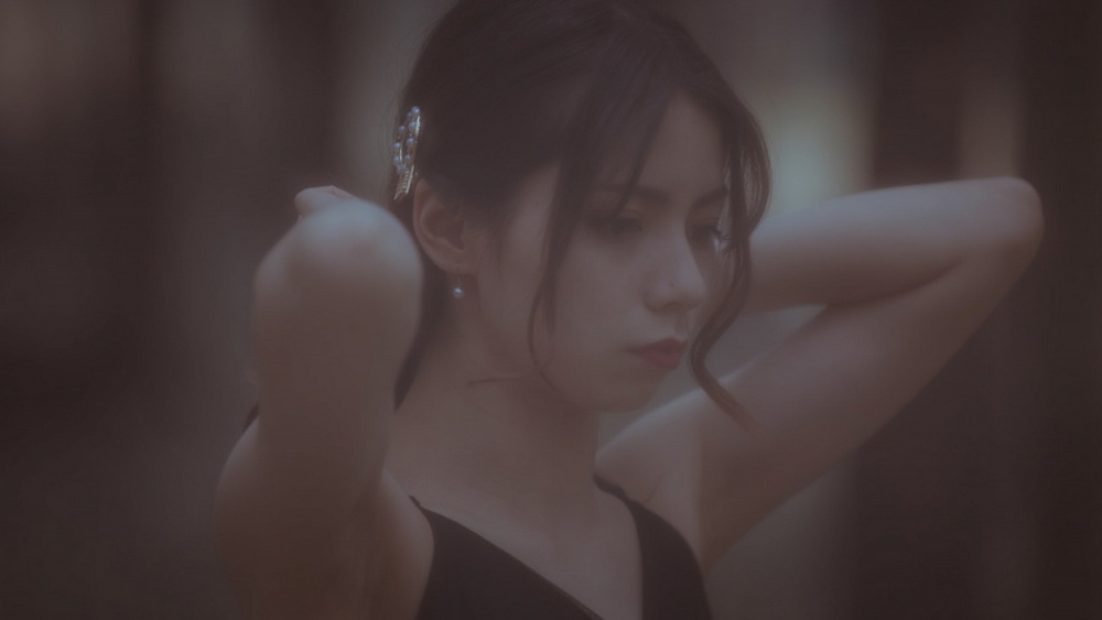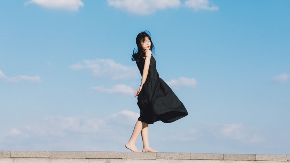 穿着黑色吊带裙的气质少女