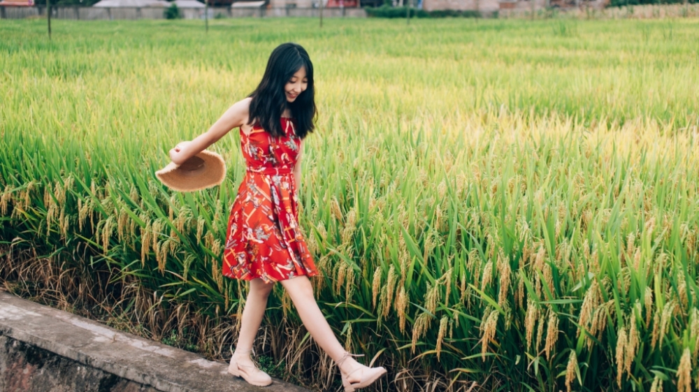 金色稻田,红裙仙女