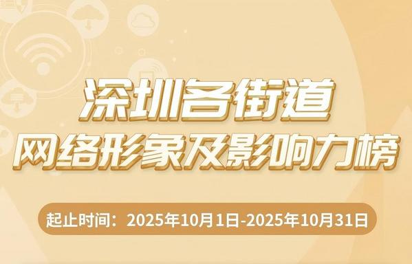 10月,各街道主动深耕社交平台的传播规律,优化拓展基层治理,《深圳各街道网络形象及影响力榜》(10月榜单)编制完成。