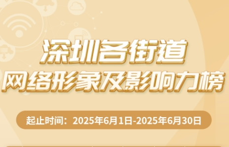 《深圳各街道网络形象及影响力榜》(6月榜单)对各街道在网络空间的展现及其影响力进行观察与评估。本次榜单的数据统计时间跨度为2025年6月1日至6月30日。