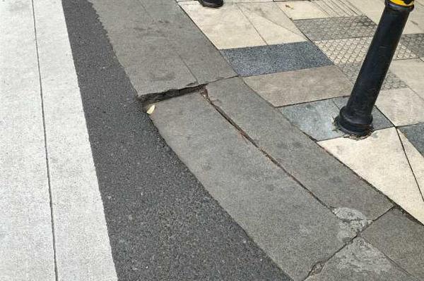 新洲路人行道此处道牙轻微塌陷?官方:已完成维修整治工作