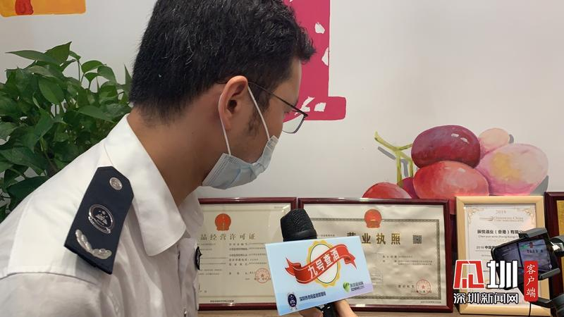 )“真酒假酒,逃不过九号查酒”。6月29日,由深圳市市场监督管理局联合深圳新闻网开展的“九号查酒”执法行动来到了位于龙岗区华南城附近的葡悦汇,针对葡萄酒销售企业开展经营行为合法合规性突击检查。