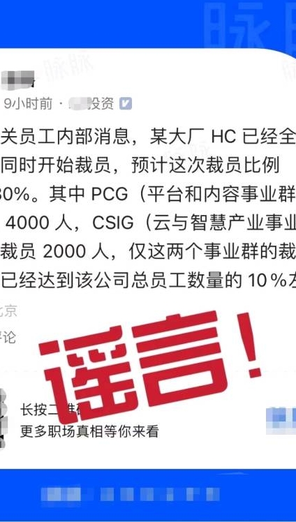 2024-04-21腾讯裁员比例高达10%到30%?辟谣了!