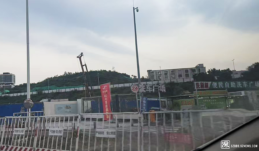龙华区华宁路1号机荷高速扩建段有人在空地上擅自搭建挡雨棚违规开设洗车点?官方回应。