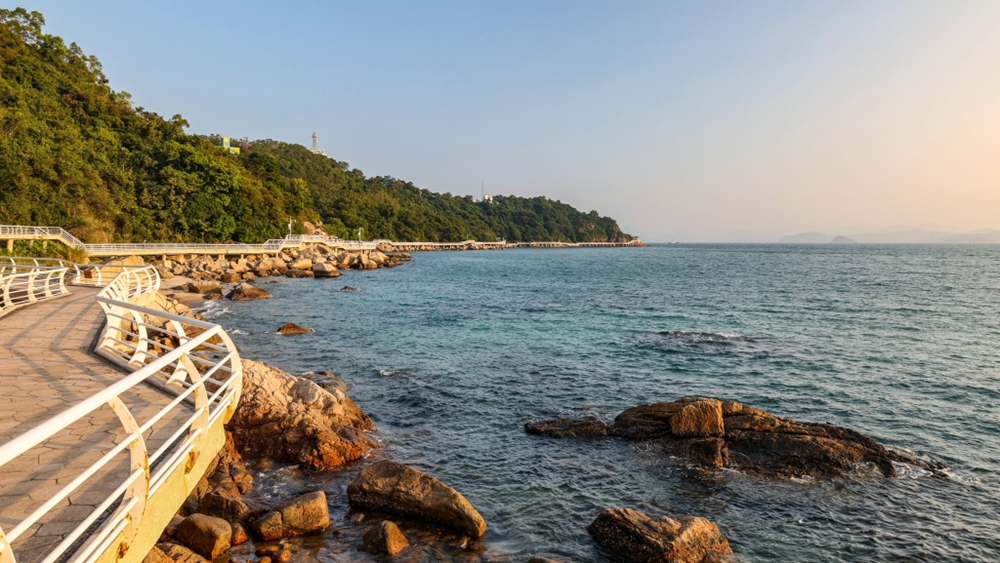背仔角栈道沿岸山色青翠碧波荡漾,风光无限好