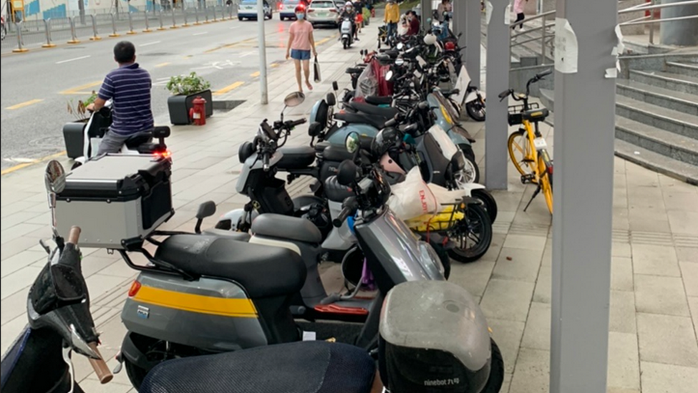 莲塘街道地铁口的一些风雨亭内停满了电动自行车