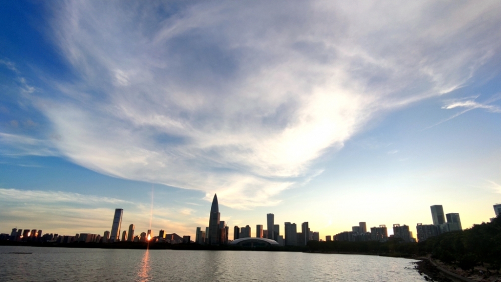 深圳湾风景优美落日晚霞醉人,还是候鸟的天堂
